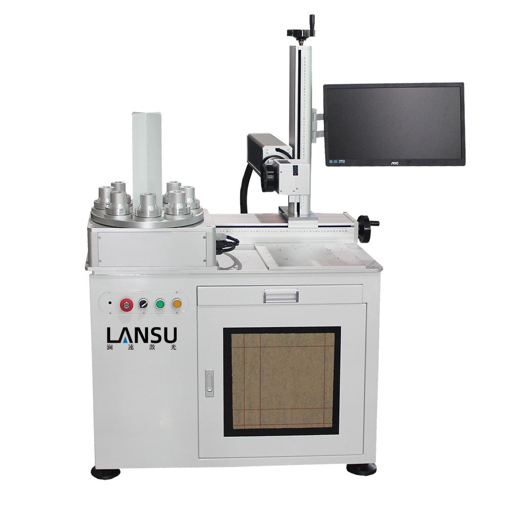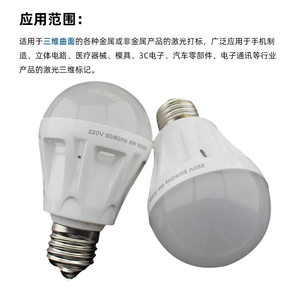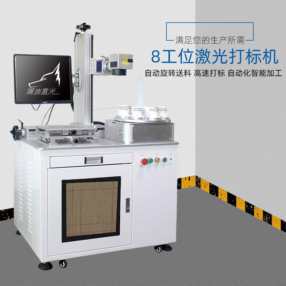 LED激光打標機采用八工位(視產品具體情況可設計為6工位或4工位)3D立體旋轉轉盤設計,光路X、Z軸手動移動可調,單個工位之間獨立工作,自動360°旋轉,減少上下料時間,提高工作效率。適用于產量在10K/d以上的球泡燈、要求打雙面、三面或360°旋轉打標的產品等,整臺機器的操作只需要普通人工進行手動上料一個簡易環節,雙工作臺,平面打標,圓周打標一機兩用,操作簡單,速度快,效率高,標刻清晰,無損耗。